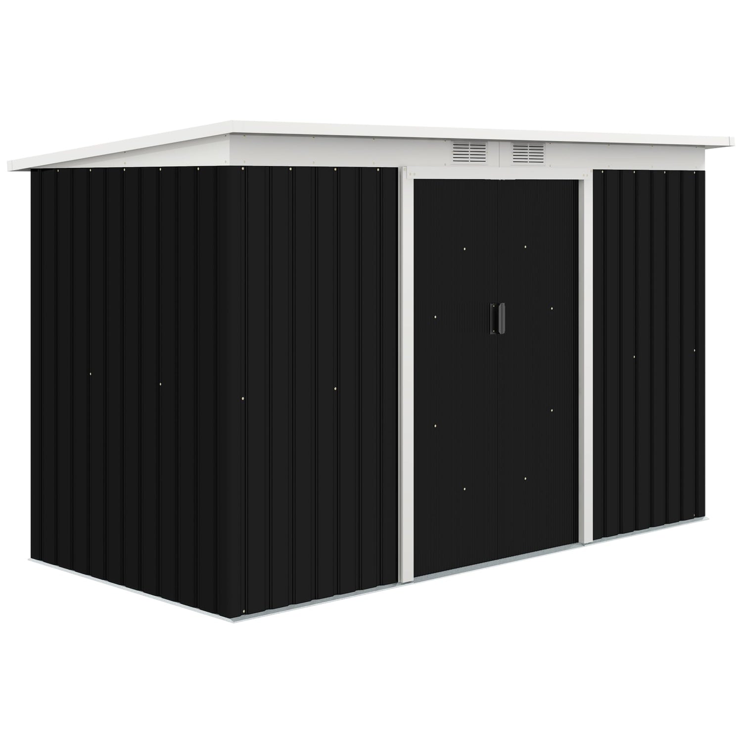 Description:Our Outdoor Storage Sheds Can Keep Your Belongings Outside Without Worry. Their Metal Walls Protect Your Important Equipment From Water, Wind, Sunlight, Wildlife Of All Sizes, And Even Emergencies. These Tool Sheds Are Faster To Assemble Than Their Wooden Counterparts And Don'T Require An Expert. Store Garden Tools, Pool Toys, And Lawn Equipment Without Them Getting Musty With Help From Two Vents Found On Top. Get Storage And Value For Your Outside Space; Get An Outsunny Storage Shed.Features:- Storage Shed For Garden Tools, Lawn Care Equipment, Or Pool Supplies - Built From Galvanized Steel To Endure Weather - Sloped Roof To Prevent Water Build-Up - Lockable Door For Security - Please Be Aware A Foundation Kit Is Included But Requires Wood Boards To Have A Floor - Assembly Required Note: Please Read The Instructions Or Assembly Video Carefully Before Installation To Shorten The Installation Time.Specifications:? Color: Gray ? Material: Galvanized Steel ? Overall Dimensions: 110.25' W X 51.25' D X 62.25'/67.75' H ? Inside Dimensions: 104.75' W X 45.75' D ? Single Door Size: 37.5' W X 59.75' H ? Bottom Size: 104.75' W X 65.25' D ? Floor Area: 34 Ft ? Item Label: 845-032Cg ? Note: It Requires At Least Three People In Two Hours To Install. Do Not Install In Strong Wind.Package Includes:? 1 X Garden Storage Shed ? 1 X Manual