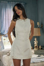 - Designed in New York. Denim Button Down Mini Dress with self covered functional snaps, adjustable ring and slider waist at center back and Embroidery at neckline, waist and hem.
